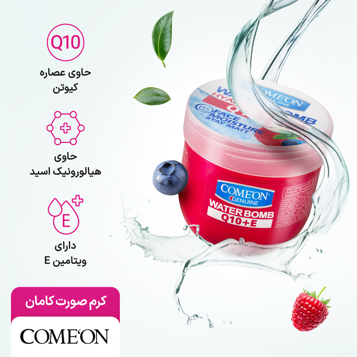 • کرم کاسه‌ای کامان مدل واتر بمب (Water Bomb) یک مرطوب‌کننده و آبرسان قوی با بافتی بسیار سبک و ژلی–کِرمی است که به‌محض تماس با پوست، رطوبت را به لایه‌های عمقی پوست منتقل می‌کند. این کرم بدون ایجاد حس چربی یا سنگینی، پوست را شاداب، نرم و باطراوت نگه می‌دارد و برای استفاده روزانه گزینه‌ای ایده‌آل به شمار می‌رود. فرمولاسیون بر پایه آب این محصول، آن را به انتخابی مناسب برای افرادی تبدیل کرده که به‌دنبال آبرسانی عمیق با حس سبکی روی پوست هستند.
